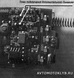 На фото 3 показаны точки на печатной плате для подключения дополнительно динамика.